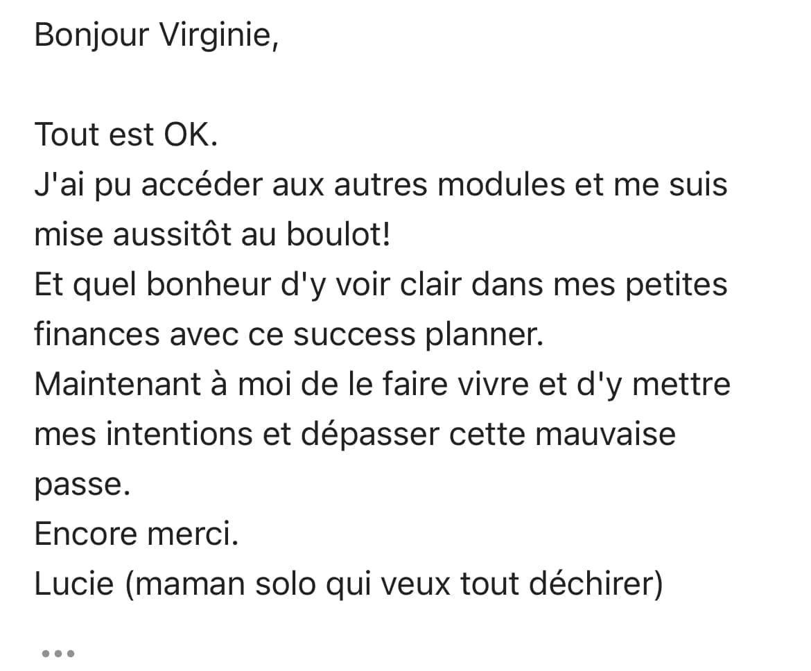 Le côté théorique (par les vidéos) couplé au côté pratique (des imprimables et supports) va te faire enfin revoir toutes tes finances de la façon la plus efficace!